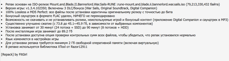 11:40 29.11.2024 — Репак от FitGirl (45.93 GB) обновлена до версии v1.3.4.102350 + DLC War Sails