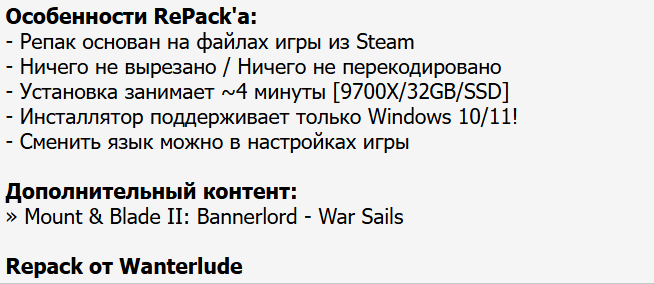 19:06 03.12.2025 — репак от Wanterlude обновлён до версии v 1.3.9.103334 + DLC War Sails. Инсталлятор поддерживает только Windows 10/11!