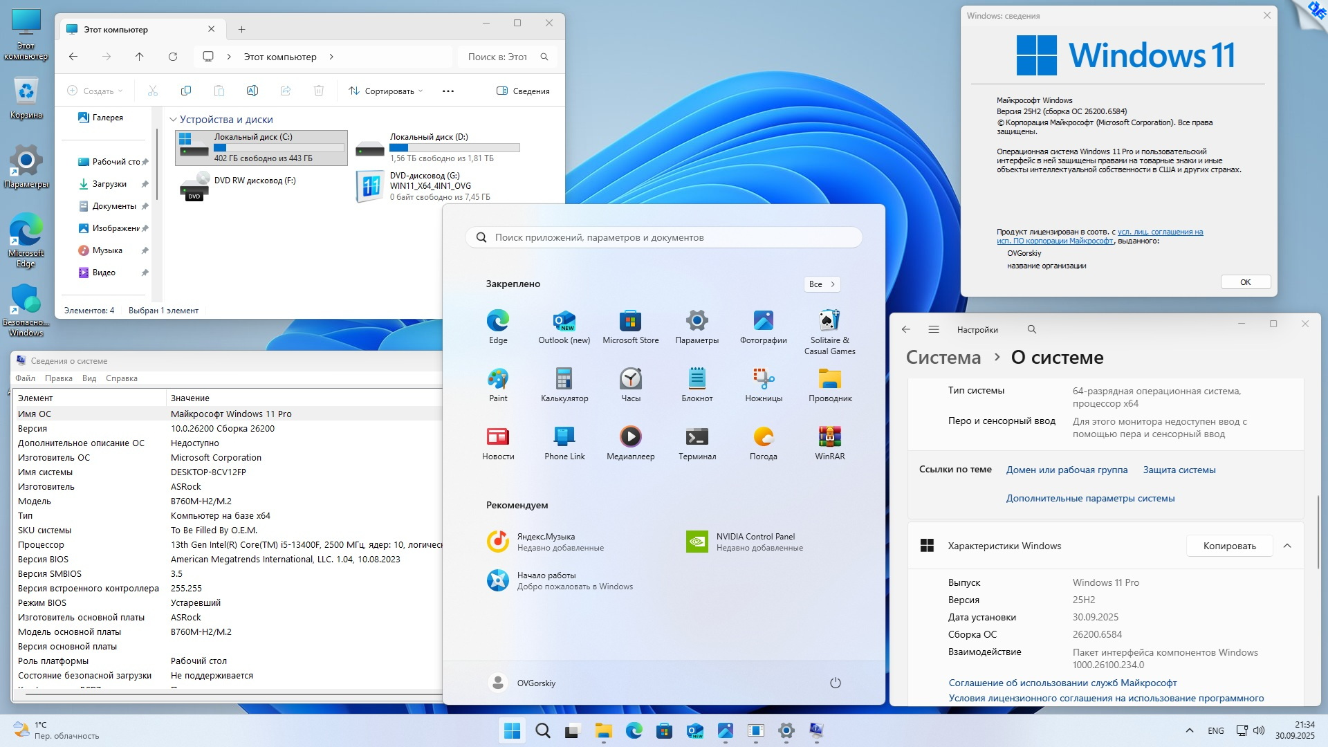 Технические данные Windows 11 25H2 4in1 Upd 10.2025 by OVGorskiy торрент: