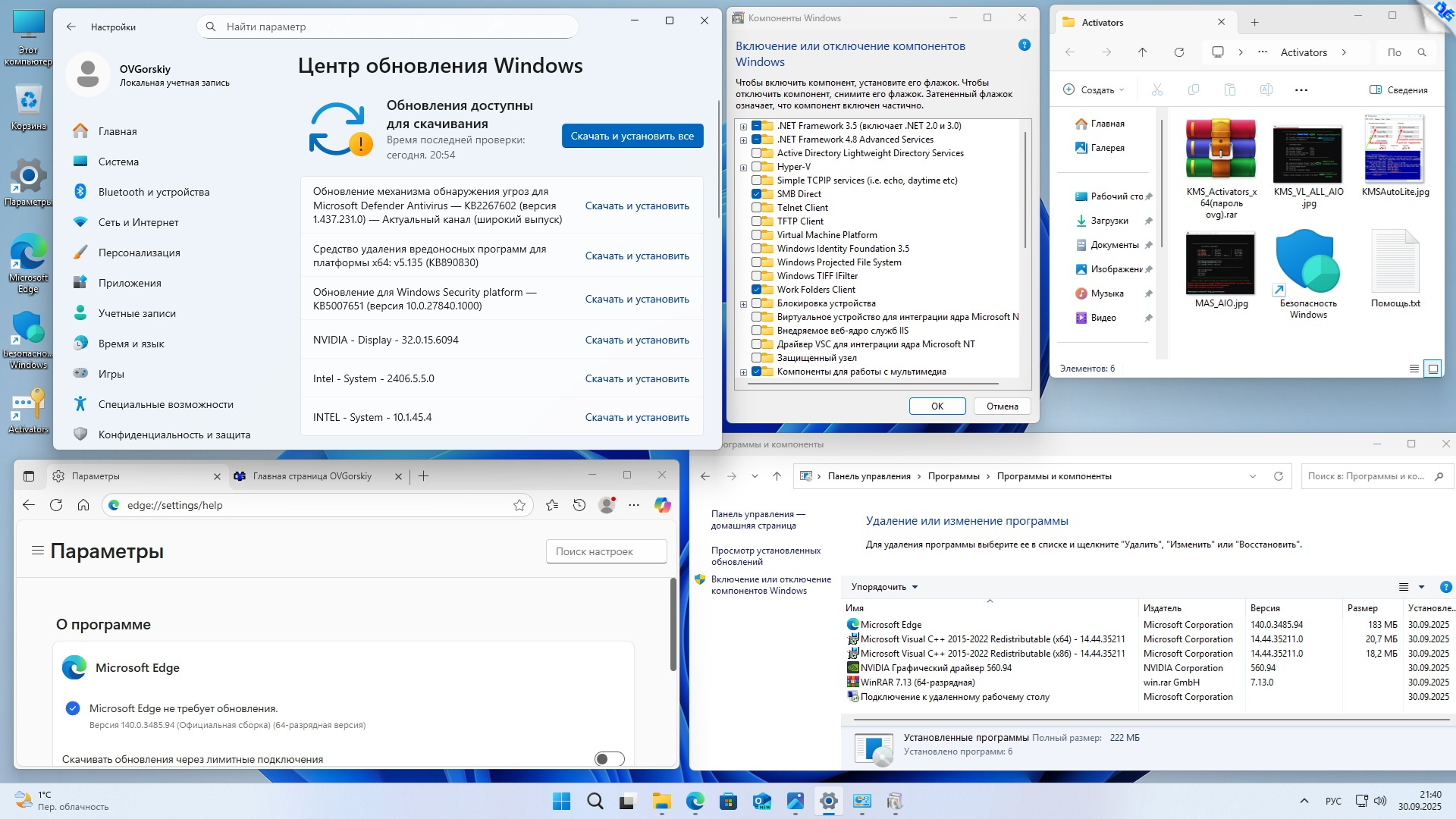 Торрент Windows 11 25H2 4in1 Upd 10.2025 by OVGorskiy, возможности и способности: