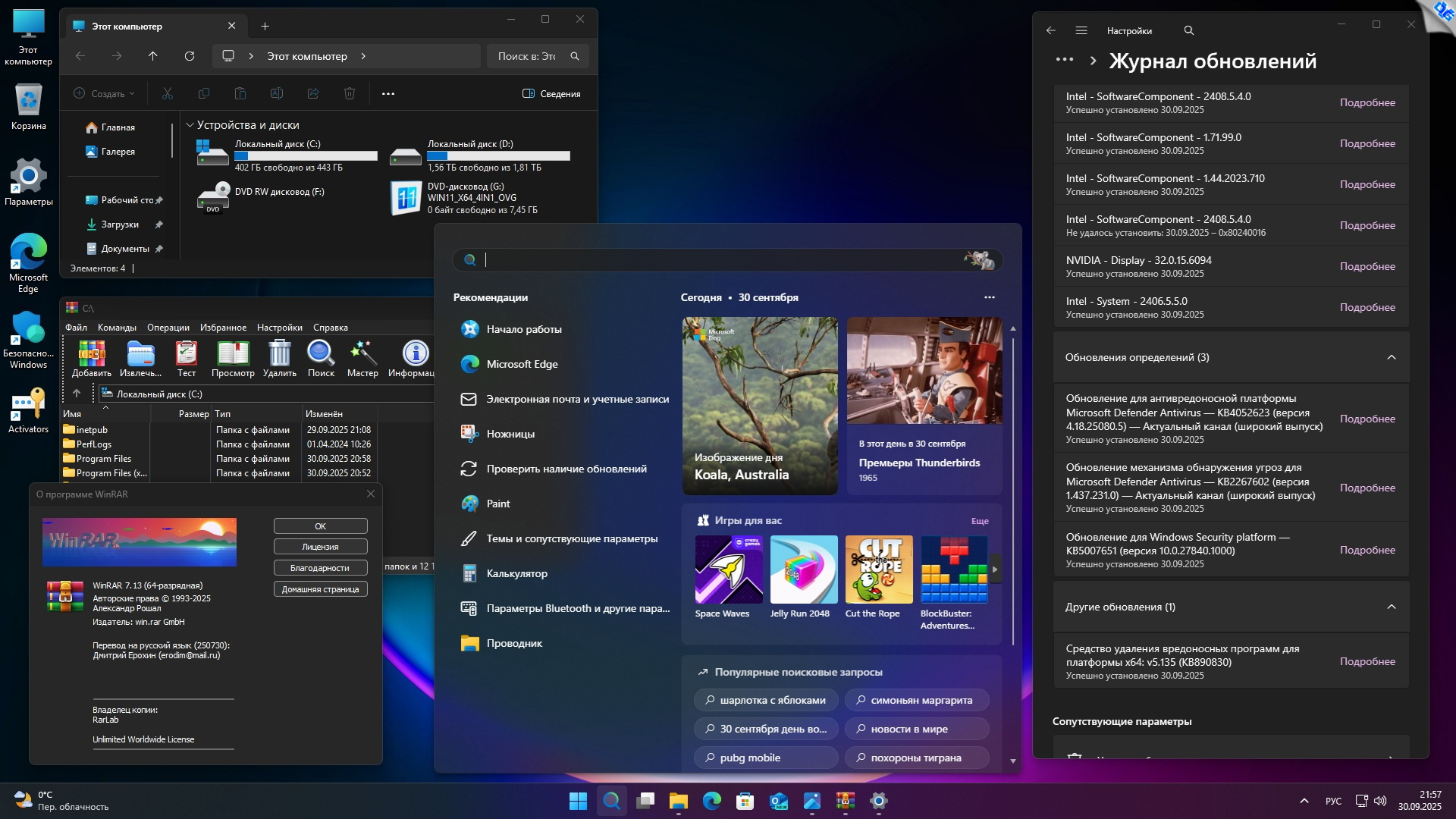 • Установлен архиватор WinRAR v7.13.