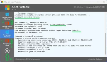 Если активация не удалась с первого раза, повторите попытку после перезагрузки любым другим активатором, присутствующих в папке. Запустите расписание для автоматической переактивации чтобы не беспокоиться об активации в дальнейшем. Обязательно отключите антивирус или защитник Windows при активации и внесите активаторы в разряд доверенных. Читайте файл помощи в папке с активаторами. Для более подробной информации в папке с активаторами присутствует файл помощи и картинки с инструкциями.