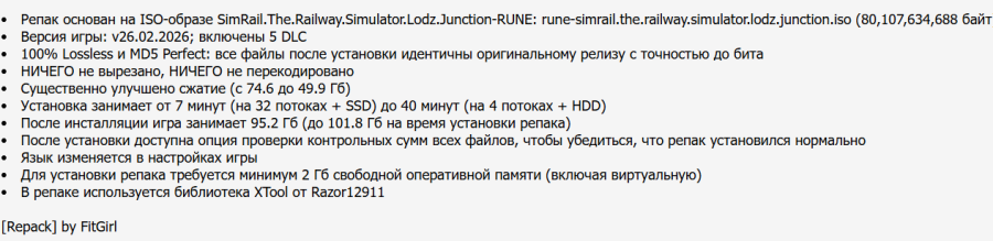 21:29 01.03.2026 — РЕПАК ОТ FITGIRL (49.87 GB) ОБНОВЛЕН ДО ВЕРСИИ v26.02.2026 + DLC Lodz Junction