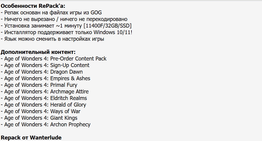 19:38 06.04.2024 — РЕПАК ОТ WANTERLUDE ОБНОВЛЕН ДО ВЕРСИИ 1.011.003.111420 (в меню) / build 19680879 (SteamDB) + ВСЕ DLC. Инсталлятор поддерживает только Windows 10/11!