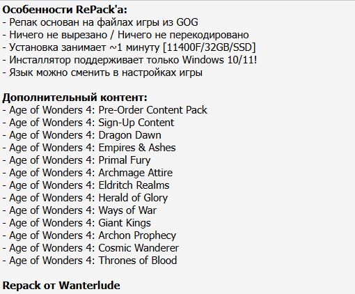 22:58 11.01.2024 — РЕПАК ОТ WANTERLUDE ОБНОВЛЕН ДО ВЕРСИИ 1.013.005.116296 + ВСЕ DLC. Инсталлятор поддерживает только Windows 10/11!