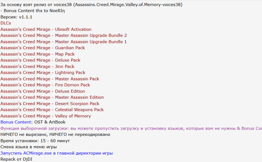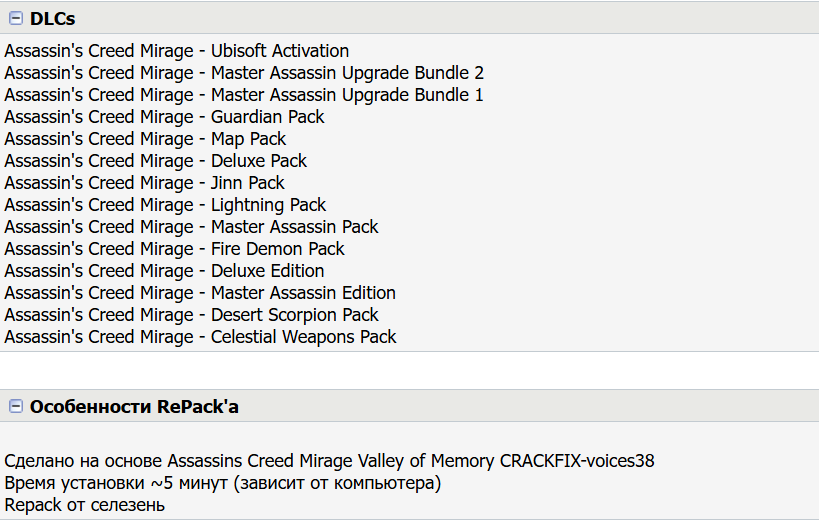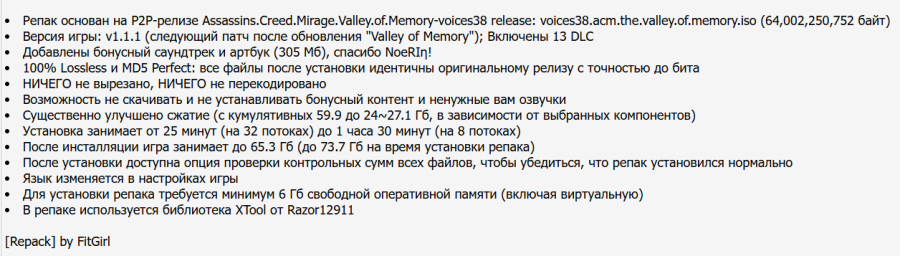 11:20 02.02.2026 — РЕПАК ОТ FITGIRL (27.08 GB) И DODI (30.78 GB) ОБНОВЛЕНЫ: ВЗЛОМ ОТ VOICES38, ПОСЛЕДНЯЯ ВЕРСИЯ ИГРЫ v 1.1.1 + ВСЕ DLC, ВКЛЮЧАЯ СЮЖЕТНОЕ. ВНИМАНИЕ! Минимальный размер репака FitGirl - 24 GB, можно не скачивать и не устанавливать бонусный контент и ненужные вам озвучки