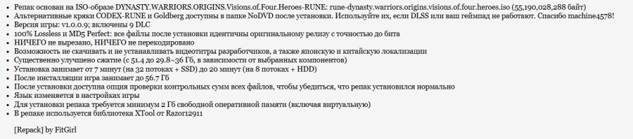 + РЕПАК ОТ FITGIRL (32.93 GB) ОБНОВЛЁН ДО ВЕРСИИ 1.0.0.9 (Build 21189498) + 9 DLC. Альтернативные кряки CODEX-RUNE и Goldberg доступны в папке NoDVD после установки. Используйте их, если DLSS или ваш геймпад не работают. Спасибо machine4578! ВНИМАНИЕ! Минимальный размер репака - 29.8 Гб, можно не скачивать и не устанавливать видеотитры разработчиков, а также японскую и китайскую озвучки