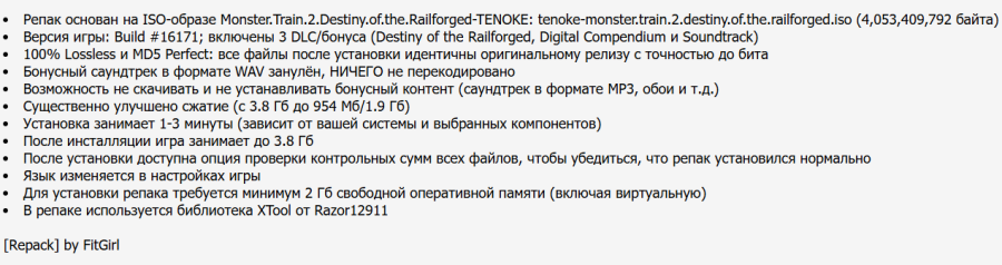 02:11 06.02.2026 — РЕПАК ОТ FITGIRL (1.88 GB ) ОБНОВЛЁН ДО ВЕРСИИ Build #16171 + 3 DLC/бонуса. ВНИМАНИЕ! Минимальный размер репака FitGirl - 954 MB, можно не скачивать и не устанавливать бонусный контент (саундтрек в формате MP3, обои и т.д.)