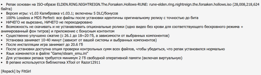 04:38 05.12.2025 — РЕПАК ОТ FITGIRL (20.04 GB) ОБНОВЛЁН ДО ВЕРСИИ v1.03/v1.03.1 + DLC The Forsaken Hollows. Те, у кого осталась прошлая версия репака — могут перехешироваться. Язык изменяется в файле "Game/steam_emu.ini"
