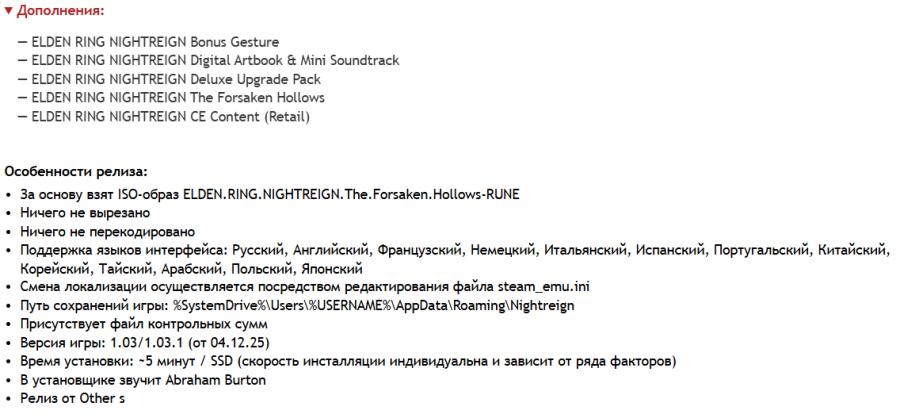 21:22 05.12.2025 — ДОБАВЛЕН РЕПАК ОТ OTHER S (20.6 GB), ВЕРСИЯ ДО ВЕРСИИ v1.03/v1.03.1 + DLC The Forsaken Hollows