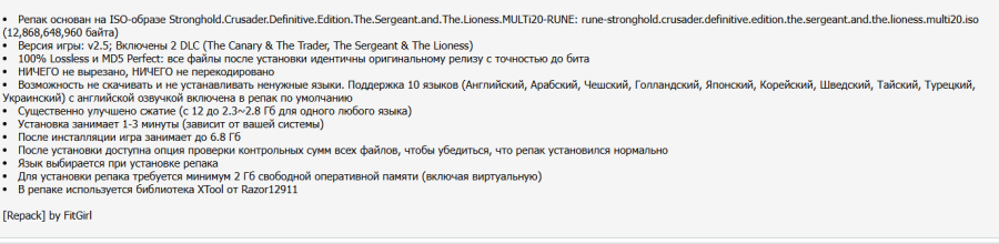 09:04 05.02.2026 — РЕПАК ОТ FITGIRL (5.89 GB) ОБНОВЛЕН ДО ВЕРСИИ 2.501 (Build 21767763) + DLC The Sergeant & The Lioness. ВНИМАНИЕ Минимальный размер репака - 2.3 GB, Можно не скачивать и не устанавливать ненужные языки. Поддержка 10 языков (Английский, Арабский, Чешский, Голландский, Японский, Корейский, Шведский, Тайский, Турецкий, Украинский) с английской озвучкой включена в репак по умолчанию