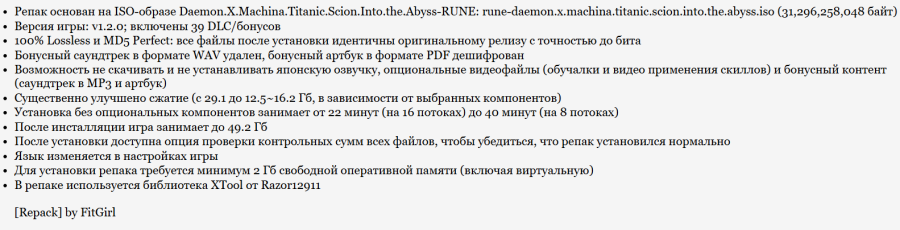 03:19 18.09.2025 — РЕПАК ОТ FITGIRL (16.22 GB) ОБНОВЛЁН ДО ВЕРСИИ v1.2.0 + 39 DLC/бонусов. ВНИМАНИЕ! Минимальный размер репака - 125. GB, можно не скачивать и не устанавливать японскую озвучку и опциональные видеофайлы (обучалки и видео применения скиллов)