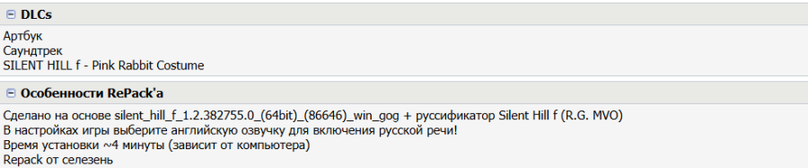 19:52 23.09.2025 — ДОБАВЛЕН РЕПАК ОТ FITGIRL (33.91 GB). ВНИМАНИЕ: Минимальный размер репака - 29 GB, можно не скачивать и не устанавливать бонусный контент (приложение с артбуком/саундтреком и отдельным саундтреком в формате MP3) и опциональные ролики (шуточное видео для UFO-концовки и одна из концовок игры с бонусными одежками ГГ). По умолчанию в репак включено видео концовки с одежкой по умолчанию