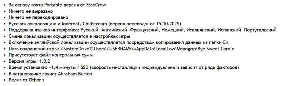 13:48 16.10.2025 — ДОБАВЛЕН РЕПАК ОТ OTHER S С РУСИФИКАТОРОМ (7.03 GB). Включение английской локализации осуществляется посредством копирования данных из папки En