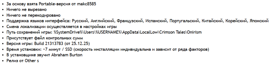 03:26 30.12.2025 — ДОБАВЛЕН РЕПАК ОТ OTHER S, ВЕРСИЯ ИГРЫ Onirism 12/29/2025 patch (patchnotes) / build 21338166 (SteamDB)