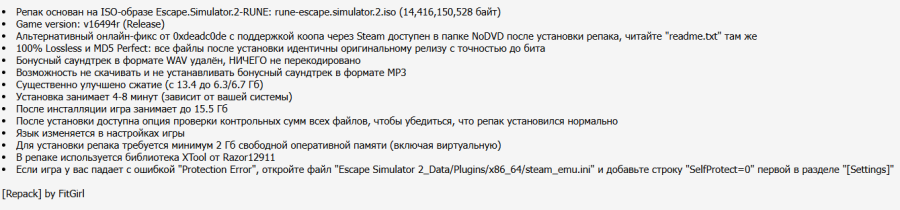 03:48 29.10.2025 — ДОБАВЛЕН РЕПАК ОТ СЕЛЕЗЕНЬ И FITGIRL. В репаке FitGirl есть альтернативный онлайн-фикс от 0xdeadc0de с поддержкой коопа через Steam доступен в папке NoDVD после установки репака, читайте "readme.txt" там же