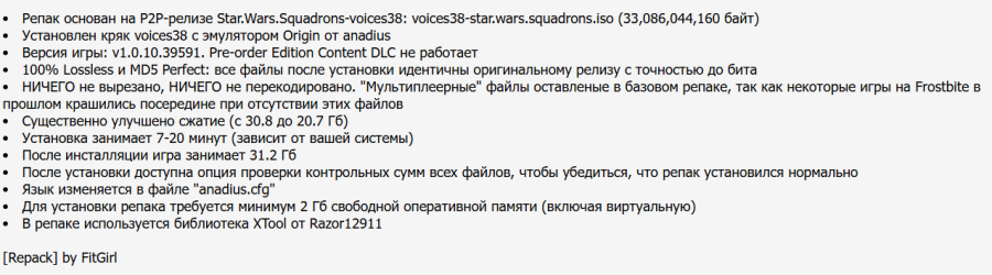 14:22 16.11.2025 — ДОБАВЛЕН РЕПАК ОТ FITGIRL (20.68 GB). "Мультиплеерные" файлы оставлены в базовом репаке, так как некоторые игры на Frostbite в прошлом крашились посередине при отсутствии этих файлов