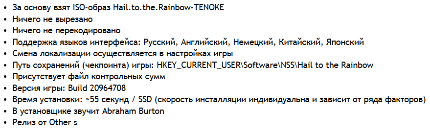 2. Запустить игры с файла Hail to the Rainbow.exe в главной директории игры
