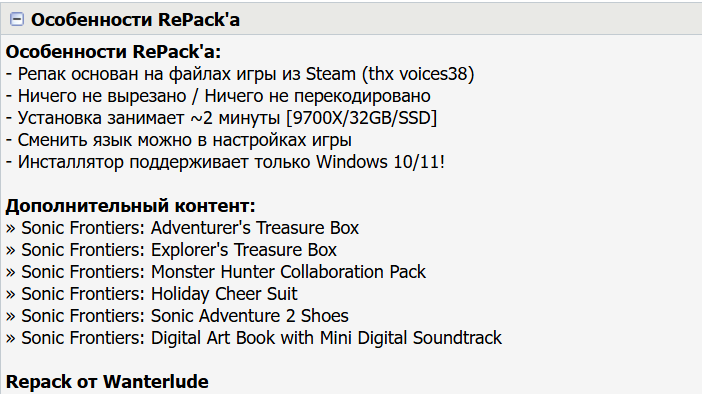Инсталлятор репака от Wanterlude поддерживает только Windows 10/11!