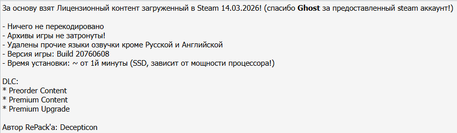 15:35 15.03.2026 — ДОБАВЛЕНЫ РЕПАКИ ОТ DECEPTICON (75.97 GB) И OTHER S (76.3 GB)