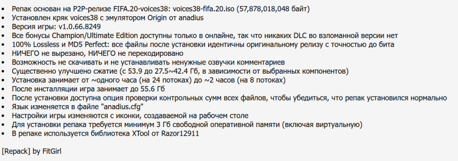 ВНИМАНИЕ! Минимальный размер репака FitGirl - 27.5 GB, можно не скачивать и не устанавливать ненужные озвучки комментариев