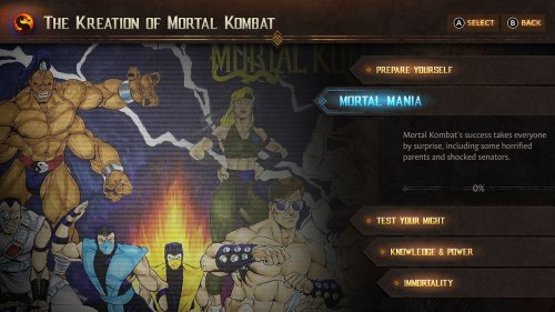Mortal Kombat: Legacy Kollection помогает понять игрокам узнавать славную историю Mortal Kombat. В игре доступна временная шкала сюжета оригинальной серии, а также подробные истории персонажей, связанные с ними секреты и детали создания.